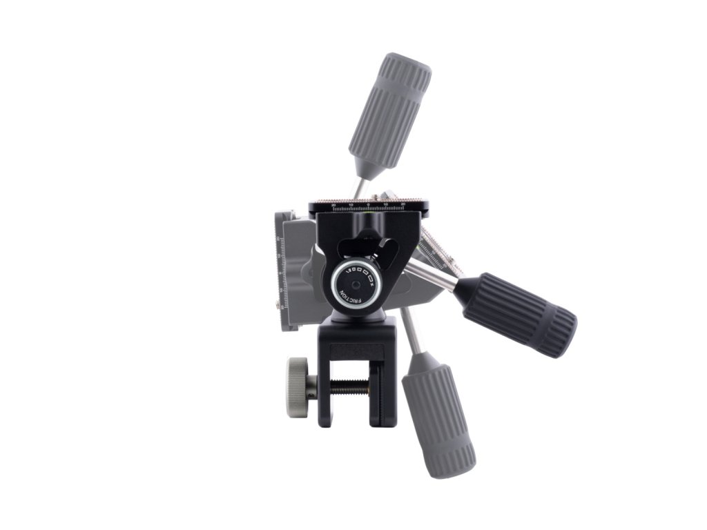 Upnutí optického vybavení nebo jiného příslušenství je možné pomocí Arca-swiss standardu (po vysunutí rychloupínací destičky) nebo namontováním na destičku pomocí klasického stativového závitu 1/4". Stativová hlava umožňuje bezpečnou a plynulou manipulaci ať už se spektivem, fotoaparátem nebo kamerou.